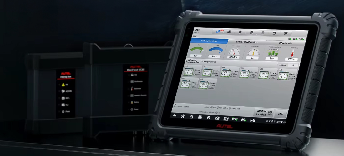 - Autel EV scannt die Komponenten, aus denen ein Hochspannungssystem besteht, liest und behebt Fehlercodes und umfasst Verfahren zum Austausch von Komponenten und Servicefunktionen. Autel EV kann den Zustand der Traktionsbatterie durch Überprüfung der SOC- und SOH-Parameter detailliert analysieren. Die Software liefert Informationen über den Standort der Batterie sowie über die korrekte Handhabung und den Betrieb der Batterie.