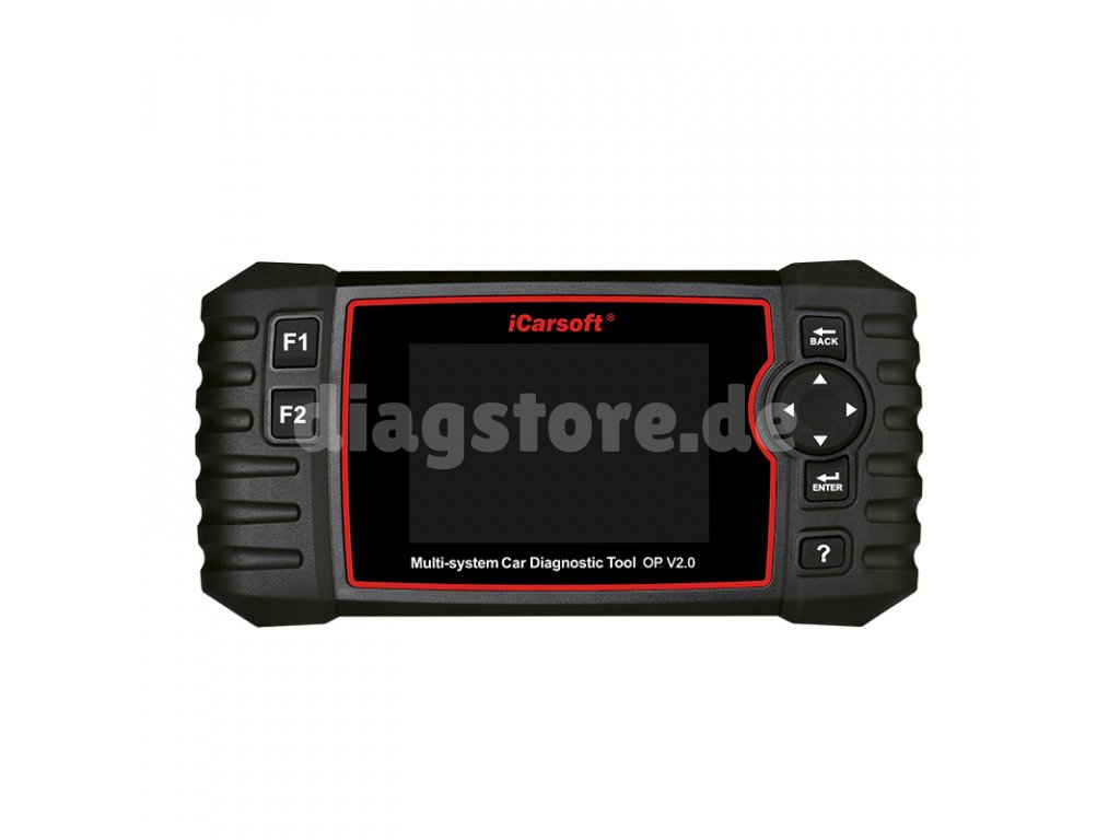 iCarsoft OP V2.0 ist ein Diagnosegerät für Fahrzeuge von Opel/Vauxhall. Es unterstützt die Diagnose aller Geräte, wobei es das Lesen und Löschen von Fehlern, die Anzeige von Live-Daten und einige Servicefunktionen ermöglicht. Grundlegende Motordiagnose auch für alle anderen Marken im Rahmen des OBD-II-Standards verfügbar.